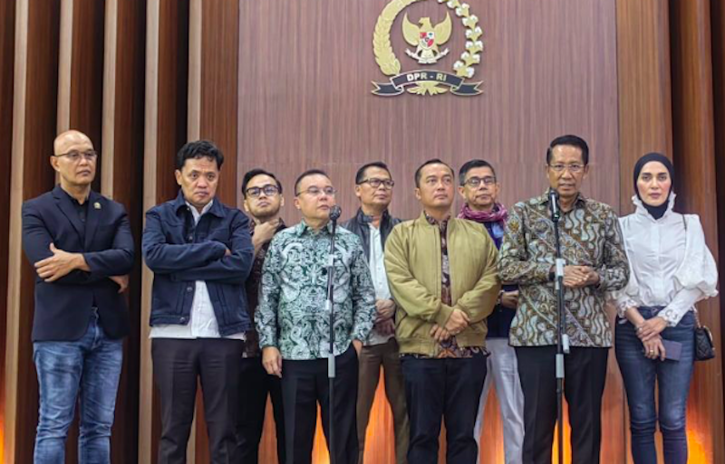 Dalam konferensi pers tersebut hadir pula Menteri Sekretaris Negara Prasetyo Hadi, Ketua Komisi III DPR RI Habiburokhman, Wakil Ketua Komisi III DPR RI Sari Yuliati, Wakil Ketua Komisi III DPR RI Rano Alfath, anggota Komisi III DPR RI Hinca Panjaitan, dan Wakil Ketua Komisi I DPR RI Sukamta.