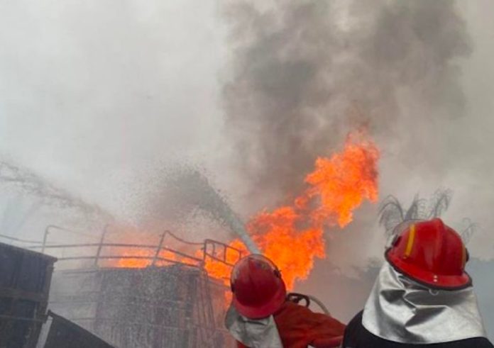 WARTALENTERA–Kebakaran hebat melanda sebuah gudang penyimpanan bahan bakar minyak (BBM) di Kelurahan Payo Selincah, Kecamatan Paal Merah, Kota Jambi, Jumat pagi (15/5/2025). Dinas Pemadam Kebakaran dan Penyelamatan (Damkartan) Kota Jambi mengerahkan 70 personel dan 9 unit armada untuk menjinakkan si jago merah.