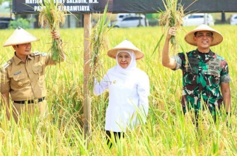 Pada kesempatan tersebut, Khofifah juga memuji inovasi Pelda Dulhadi, anggota TNI yang berhasil mengembangkan varietas padi PMJ 01 dengan teknologi tepat guna di lahan satu hektare dan menghasilkan panen hingga delapan ton. “Tanpa harus menunggu pakar atau teknologi mahal, integrated farming terbukti mampu mendorong ketahanan hingga kedaulatan pangan,” ujar Khofifah.