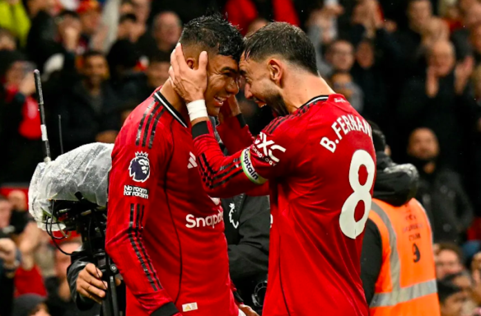 MU kemudian menggandakan keunggulan menjadi 2-0 pada menit ke-37 lewat tandukan Casemiro yang menerima umpan Harry Maguire. Namun, Casemiro justru mendapat kartu kuning kedua jelang akhir babak pertama, membuat MU harus bermain dengan 10 orang.