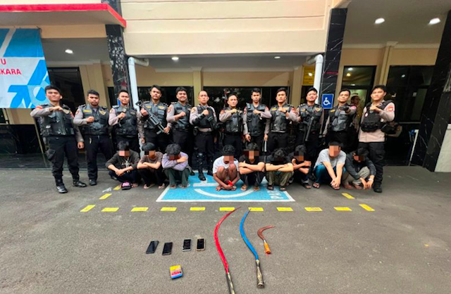 “Kami langsung melakukan pengejaran dan berhasil mengamankan sembilan orang berikut tiga senjata tajam jenis celurit yang sempat dibuang para pelaku,” ujar Kasat Samapta Polres Metro Jakarta Pusat, Kompol William Alexander, di Jakarta.