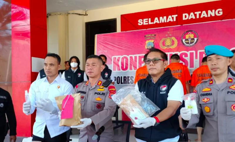 “Dalam penggerebekan itu kami mengamankan tiga tersangka serta menyita barang bukti berupa 623,19 gram tembakau sintetis dan tiga botol cairan narkotika mengandung MDMB-4en-PINACA dengan berat 11 mililiter,” ujar Kari kepada media di Dolo, Rabu (30/7/2025).
