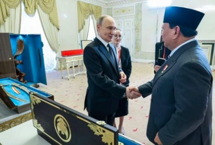 WARTALENTERA – Momen akrab dan penuh makna terjadi antara Presiden Republik Indonesia Prabowo Subianto dan Presiden Rusia Vladimir Putin dalam pertemuan bilateral yang berlangsung di St. Petersburg, Rusia, Jumat (20/6/2025). Keduanya saling bertukar cendera mata sebagai simbol eratnya hubungan persahabatan kedua negara.