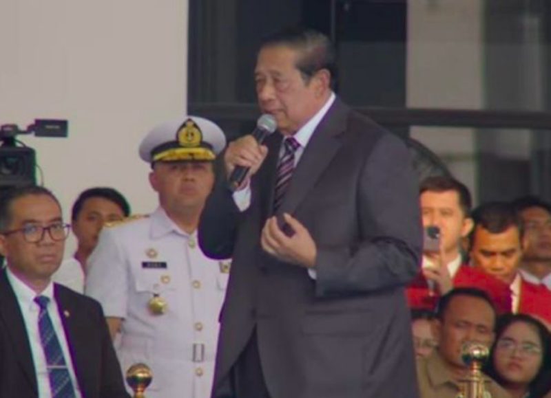 SBY mengungkapkan bahwa dirinya diminta secara langsung oleh Prabowo untuk menyampaikan sambutan, hanya 20 menit sebelum acara dimulai. Ia menyebut permintaan itu sebagai bentuk penghormatan dan perintah dari Panglima Tertinggi TNI. “Karena perintah dari Panglima Tertinggi Tentara Nasional Indonesia, saya hanya mengatakan siap,” kata SBY yang langsung disambut tepuk tangan para undangan.